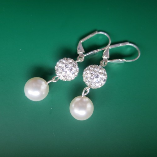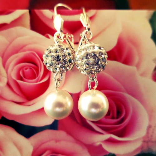 Virsraksti: mirdzošie pērļu auskari, pērļu auskari, auskari, sudraba pārklājums, swarovski, baltas pērles