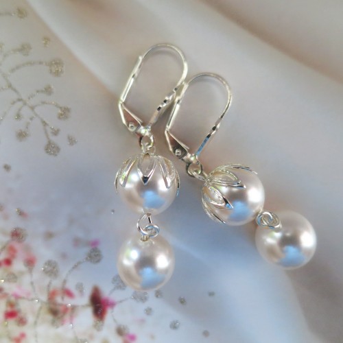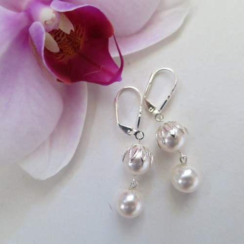 Virsraksti: klasiski pērļu auskari, pērļu auskari, auskari, sudraba pārklājums, swarovski, baltas pērles