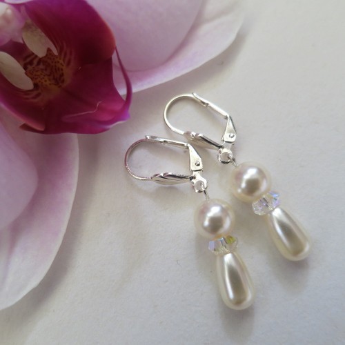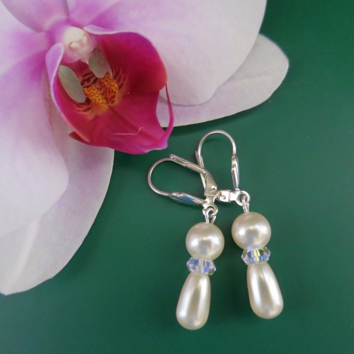 Virsraksti: klasiski pērļu auskari, pērļu auskari, auskari, sudraba pārklājums, swarovski, baltas pērles