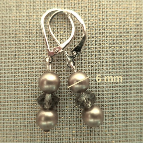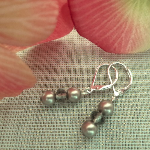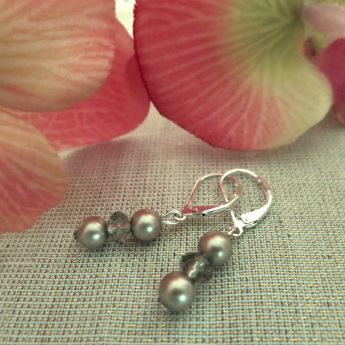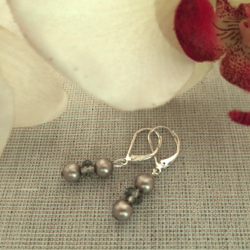 Klasiski platīnkrāsas pērļu auskariņi ar pelēkiem kristāliem