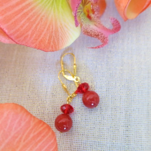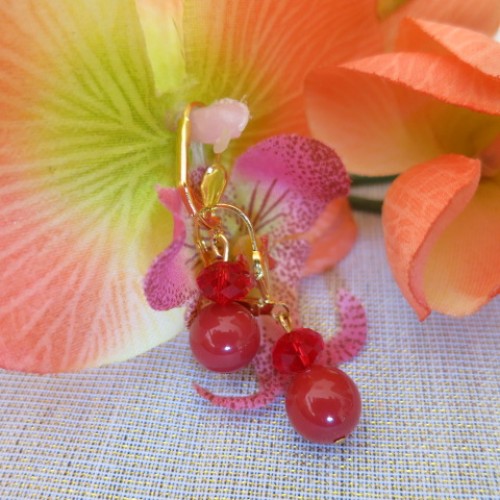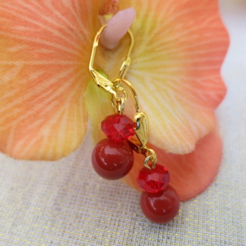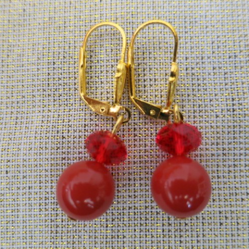 Virsraksti: klasiski pērļu auskari, pērļu auskari, auskari, zelta pārklājums, swarovski, sarkanas pērles